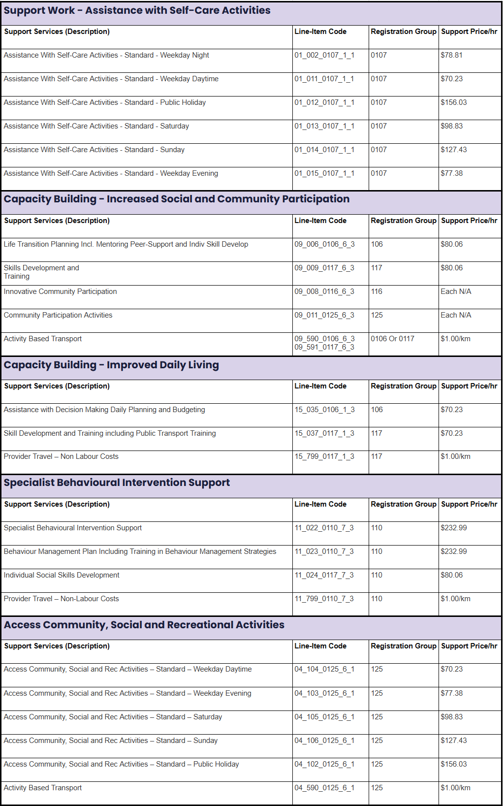 We want to ensure you have a clear understanding of our pricing. The NDIS sets price limits for all supports to ensure participants receive value for money. These prices are generally reviewed annually by the NDIA, with any changes taking effect on July 1st of each year.